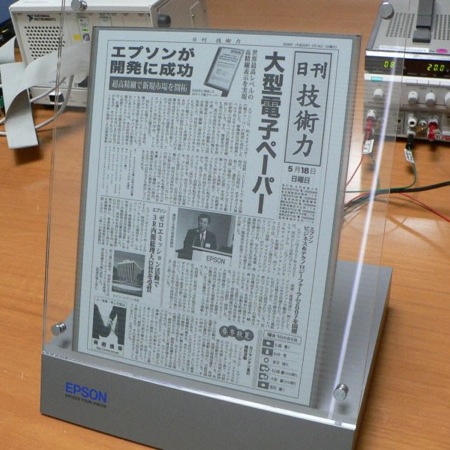 A Epson é outra empresa que está há muito tempo pesquisando o papel eletrônico. Nesta semana, eles lançaram um modelo que tem 3104 x 4128 com 385ppi em um tamanho de folha A4. Se os atuais Kindle e Sony Reader já tem resolução melhor do que o jornal esta nova geração vai ser ainda melhor para a leitura. A evolução disso está muito rápida mesmo.