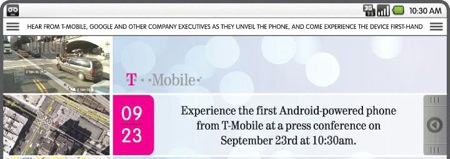 Finalmente será lançado o primeiro celular baseado na plataforma Android da Google. Provavelmente deve ser um aparelho fabricado pela HTC. A T-Mobile dos EUA está enviando este convite para a imprensa para um evento na próxima terça.