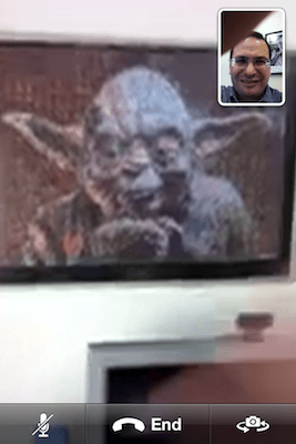 Eu, fazendo FaceTime com o mestre Yoda do Rodrigo Schmitt