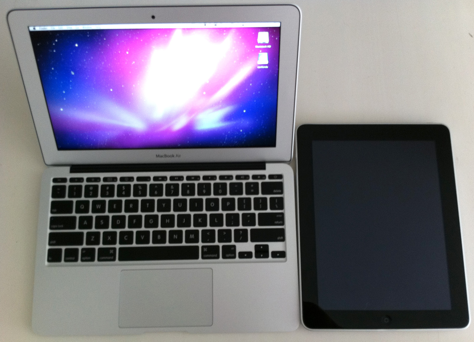 Eis que surge o iPad no começo do ano passado e eu comecei a usa-lo realmente como laptop, como reportei neste post. Se o AIR era leve o iPad me fez trocar a mochila por uma bolsa bem menor e tudo estava ainda melhor para as minhas costas. A questão é que para algumas tarefas, como programação, edição de video ou multimidia mais intensa o iPad precisava ficar em casa para o AIR entrar em ação.